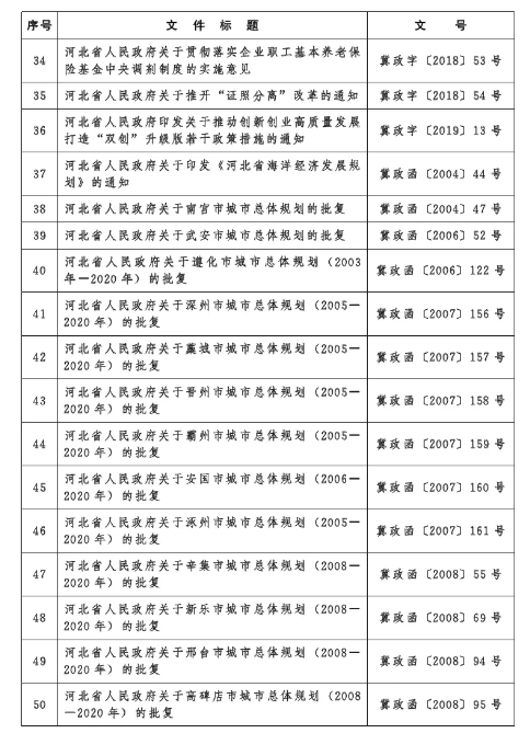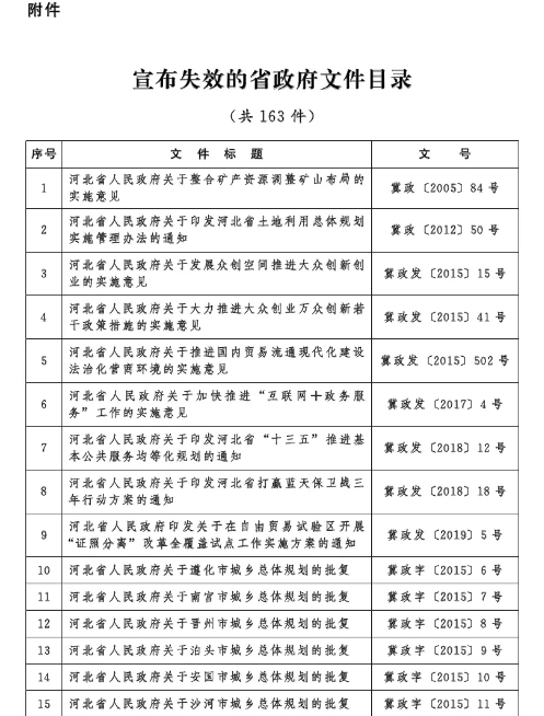 河北省人民政府关于宣布失效一批省政府文件的通知