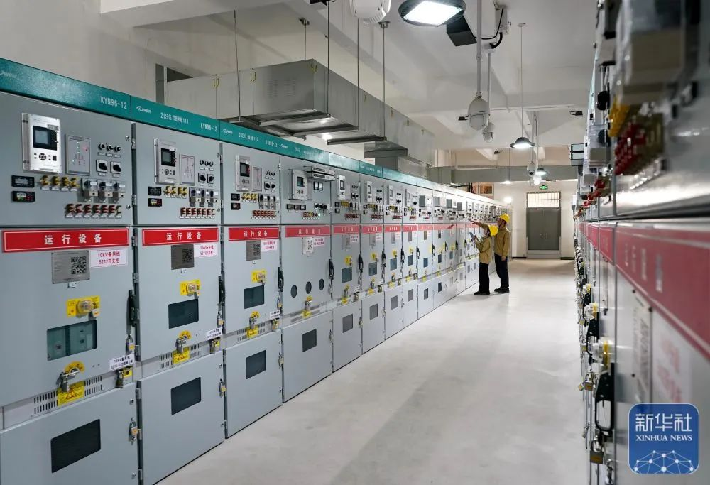 ↑9月5日,工作人员在河北雄安新区“桃源梦境”——段沙 110千伏变电站内工作。