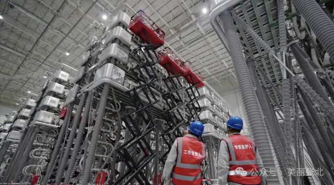 在新能源领域,河北有一项超级工程,创12项世界第一,让全球为之瞩目。它就是张北柔性直流电网工程。 2850兆瓦、2870兆瓦……10月31日,张北柔直工程中都换流站主控室大屏幕上,全站向北京输送绿电的功率数,以千分之一秒为单位持续刷新。 “张北的风点亮北京的灯”,这项工程助力北京冬奥会实现了奥运史上首次全时段100%绿电供应。 截至10月31日,张北柔直工程已安全运行1585天,累计向京津冀地区输送绿电超355.95亿千瓦时。 在中都换流站站长王大中眼里,数据背后是冀北电力人的创新与创造。 2018年初,张北柔直工程开工建设。工程新建中都、康巴诺尔、阜康和延庆4座换流站及±500千伏直流输电线路。 这是世界首个四端柔性直流电网工程,技术、设备代表了最高水平。