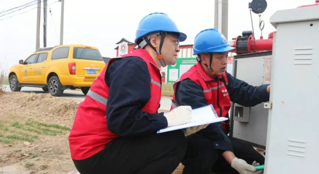 初春的清早,麦苗返青的泥土气息裹着微风扑面而来,国网新乐市供电公司员工郝石磊、石月波来到化皮镇官庄村,对农排线路和用电设备进行安全检查。