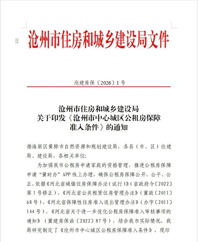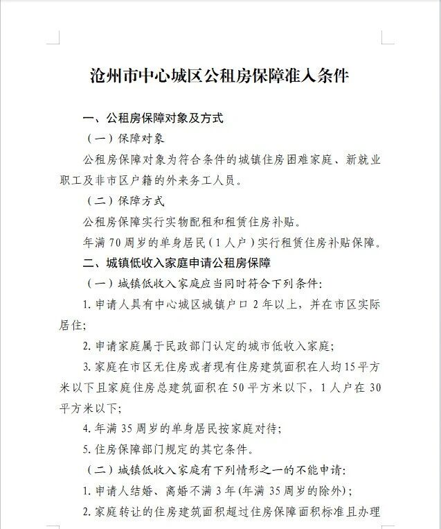 沧州市中心城区公租房保障准入条件公布!