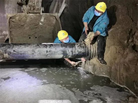 工作人员紧急抢修雨水管道。保定市供水有限公司供图