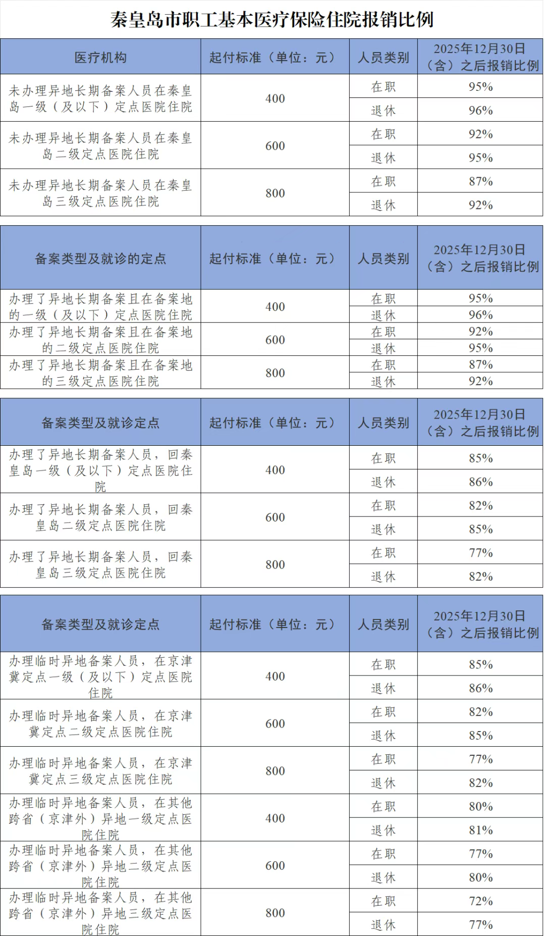 为进一步优化异地就医服务,现将需在异地住院人员的备案及报销政策提示如下:
