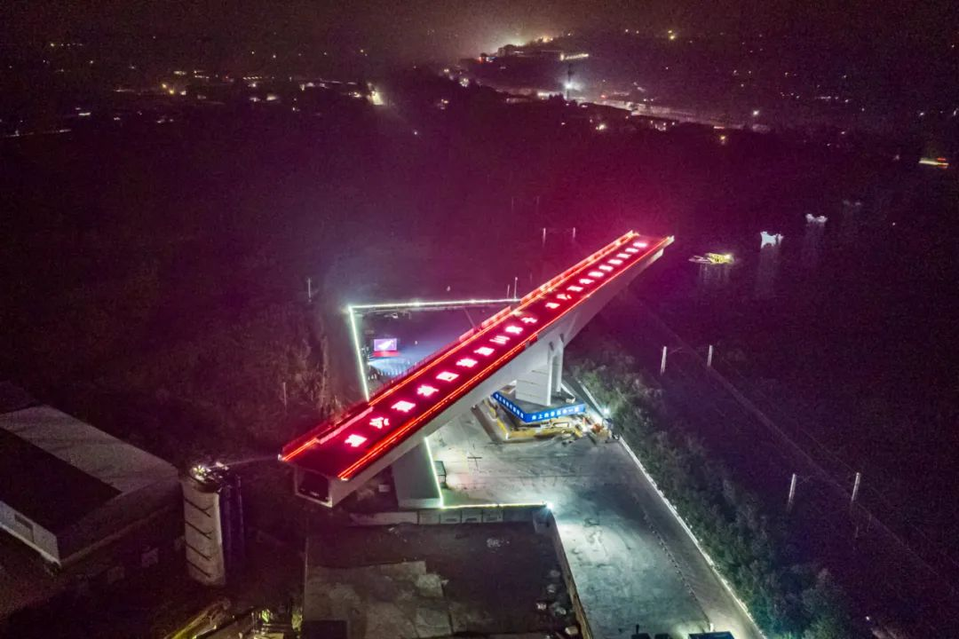 施工中,针对施工过程球铰安装精度高、现浇线形控制难、临近营业线安拆吊装风险大等特点,建设者优化施工方案,采用“先悬灌主体,后平面转体”的方式。应用BIM技术和三维可视化等新技术,沿京广铁路悬浇19个节段后,顺时针转体48°跨越京广铁路,在京广铁路路基外支架现浇直线段进行全桥合龙,转体承载力134770.35KN。转体从0:50开始,1:35结束,历时45分钟,成功跨越京广铁路。