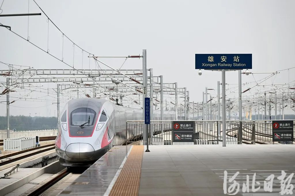 一列从雄安站开往北京西站的高铁列车驶出雄安站站台。(资料片)河北日报记者 张昊摄