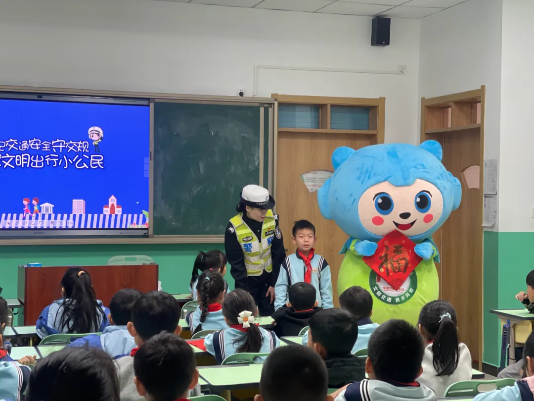 活动开始前,宣传交警带着可爱的交通玩偶“路宝儿”闪亮登场,一下子吸引了同学们的目光,并对此次的交通安全课充满了期待。在课堂上,交警结合典型的交通事故案例围绕寒假期间学生出行的安全问题进行有针对性的讲解,尤其是如何安全过马路、乘坐公共交通工具等日常出行的安全注意事项,告知并引导同学们寒假期间外出时一定要时刻牢记交通安全,遵守交通规则,安全文明出行。