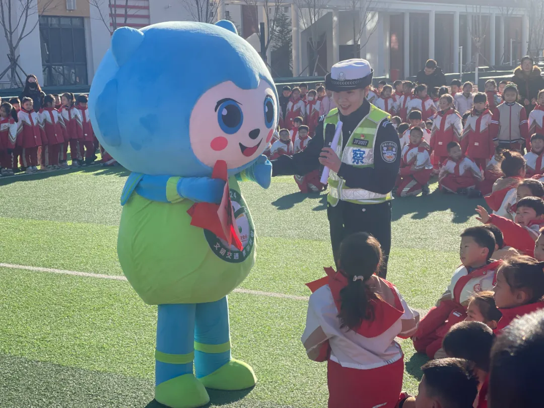 互动环节中,交警携手“路宝儿”提出了一些与交通安全相关的问题,同学们积极踊跃回答。答对的同学还获得了奖励,现场气氛十分活跃。同时,还鼓励同学们将学到的交通安全知识带回家,与家人们共享。除了交通安全知识讲解,交警和“路宝儿”一起为师生们送上了“福”字和交通安全宣传资料。“福”字寓意着平安幸福,表达了交警对师生们的美好祝愿;宣传资料则涵盖了交通安全的各个方面,为师生们提供了更多的关于交通安全知识的学习资源。通过这次活动,交警们不仅为师生们送上了新年祝福,也将交通安全知识送到了同学们身边。相信在交警和学校的共同努力下,同学们一定能够度过一个安全、快乐的假期。