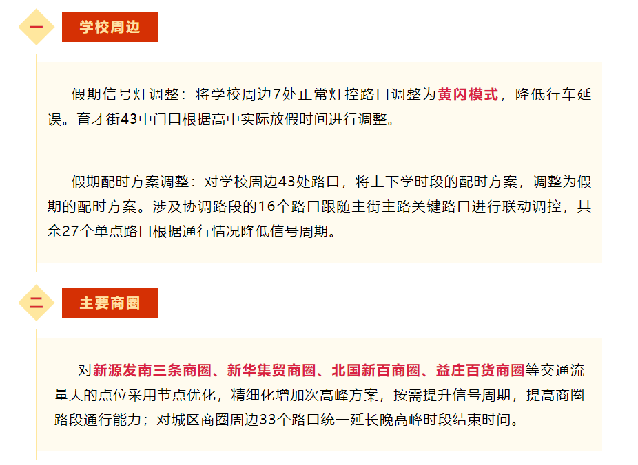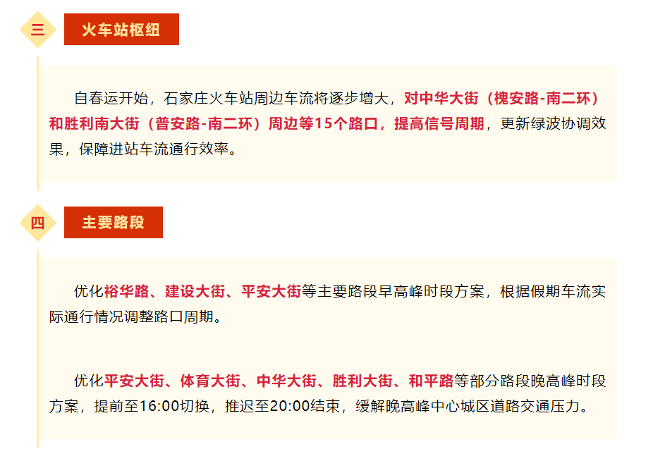 随着学校放寒假,春节也即将到来,石家庄公安交警结合往年车流量变化、拥堵情况、交通特征分析,对学校、商圈、枢纽、主要路段信号灯实施保障方案,