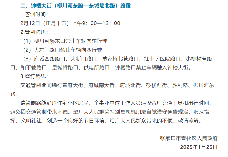 张家口一地人民政府通告!