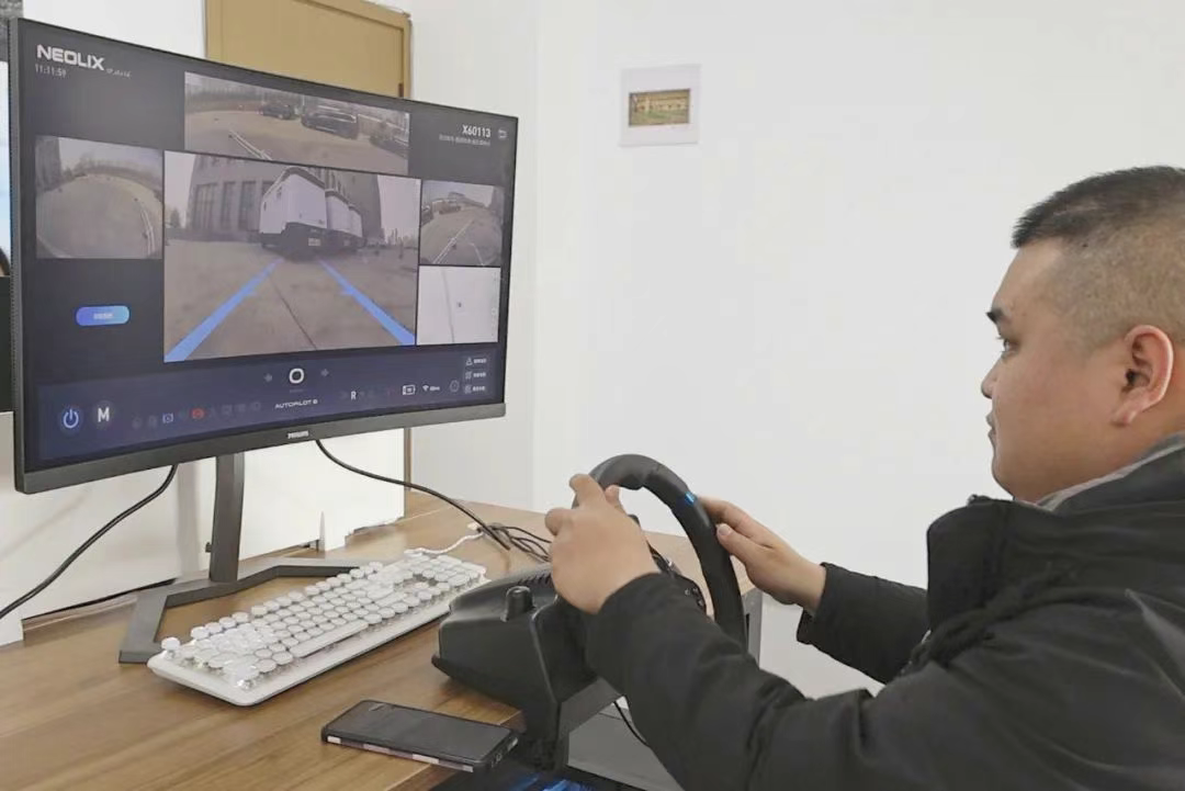 在网点监控室内,安全员蒋朝神情专注地盯着大屏上的每一个画面,保证能随时接管车辆。“无人快递车遇到红灯、行人会自动停车,遇到障碍物主动绕行,如果有突发状况发生,还可随时切换至远程人工操控模式。”蒋朝说。