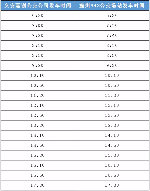 因全国疫情已得到有效控制,疫情防控工作已经进入常态化,为满足百姓出行需求,经请示上级部门同意,我公司定于20211130日起恢复文安至霸州943公交场站公交线路营运,现将有关事项公告如下: