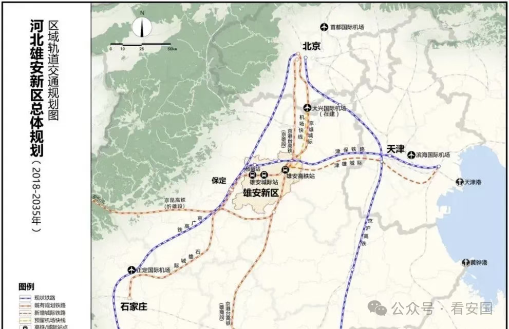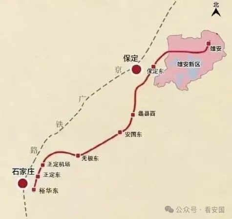 新建线路长约156公里,利用雄忻高铁引入雄安站预留蠡县经任丘至雄安段线路接入条件