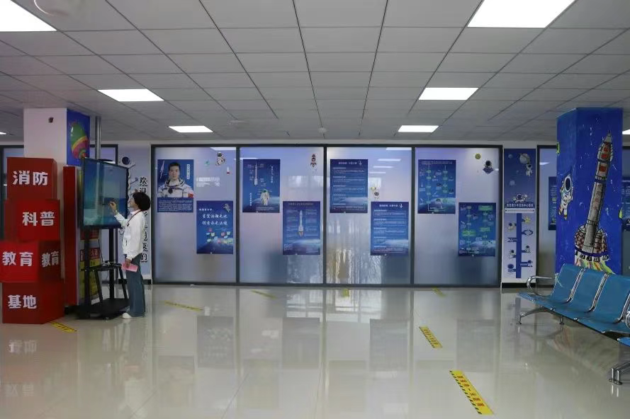 制作完航天模型后,学生们前往消防馆参观。展台上陈列着灭火器、消防栓、防火面罩等各类消防器材,通过讲解,学生们掌握了火灾逃生的正确方法、如何预防火灾等实用知识,进一步增强了消防安全意识。