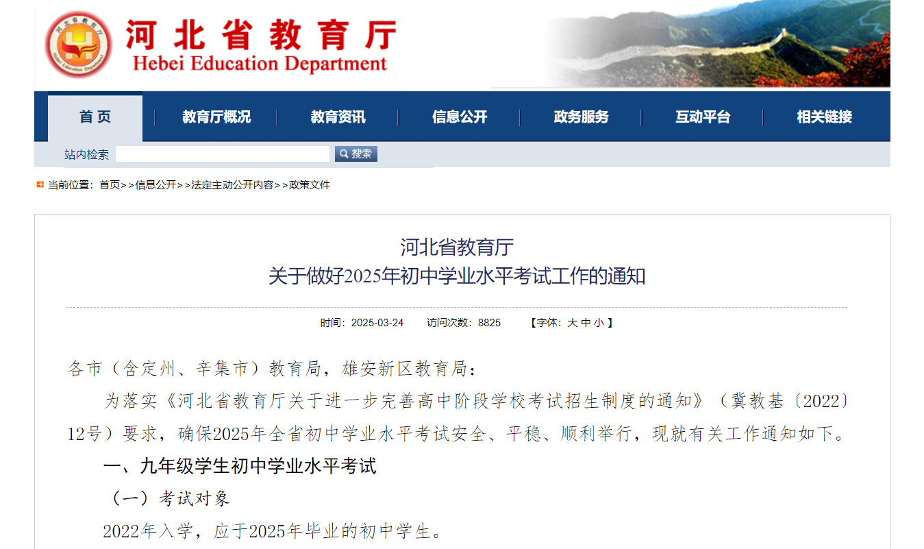 点击“阅读原文”查看《河北省教育厅关于做好2025年初中学业水平考试工作的通知》