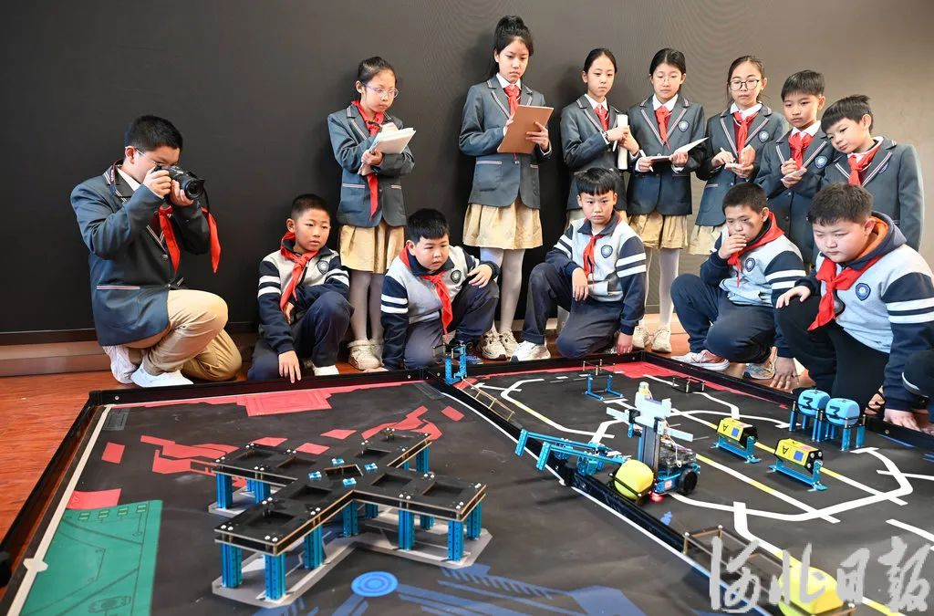 2024年12月2日,雄安容和金源小学科技课堂上,学生们进行校园机器人大赛。河北日报记者刘光昱摄