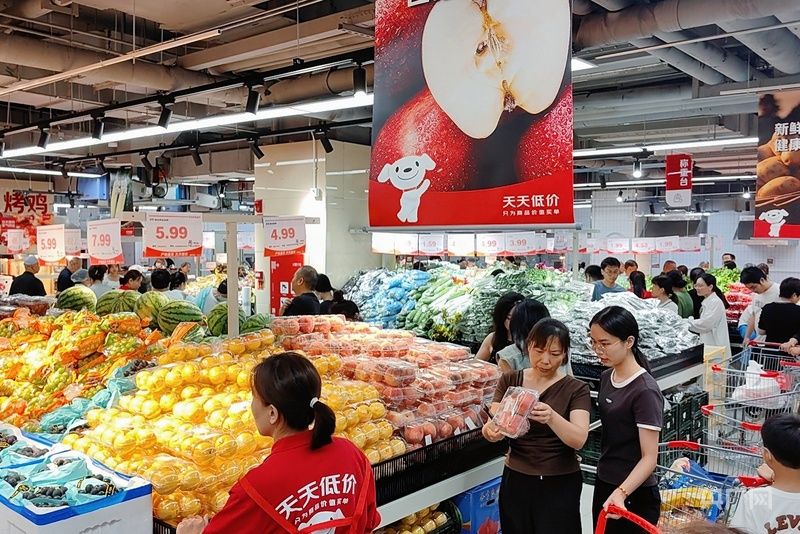 央广网保定8月23日消息(记者王艺霖 见习记者禹云飞)上午9点,河北涿州君悦广场京东折扣超市刚刚开门,购物车就已穿梭往来,民生商品正以格外实惠的价格迎接着第一批顾客;傍晚6点半,腾飞大街夜市渐次亮起暖光,人声随炊烟升起,烤串的焦香与糖炒栗子的甜糯在空气中交织缠绕。