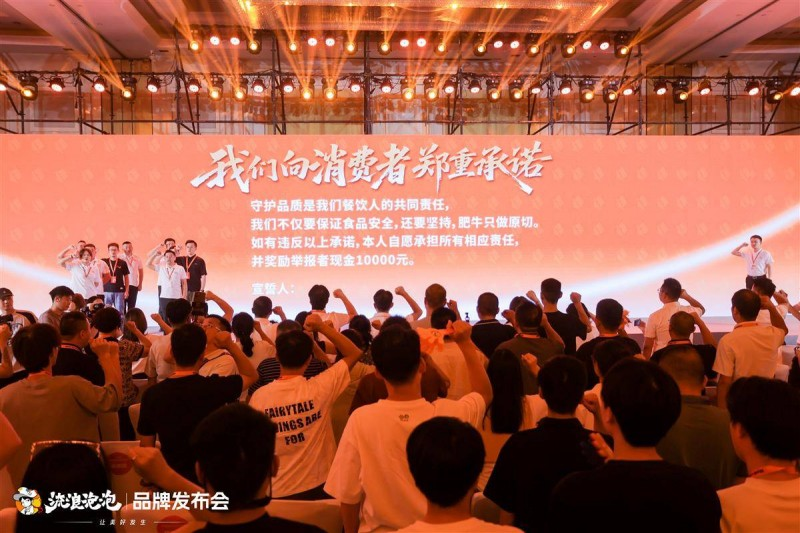 2025年8月21日,在武汉汉口喜来登大酒店举行的发布会上,,来自全国的加盟商代表与企业员工共同进行了“品质承诺宣誓”,齐声承诺“肥牛只做原切”,以此表达对品质的长期坚守。