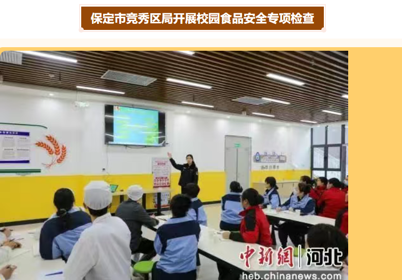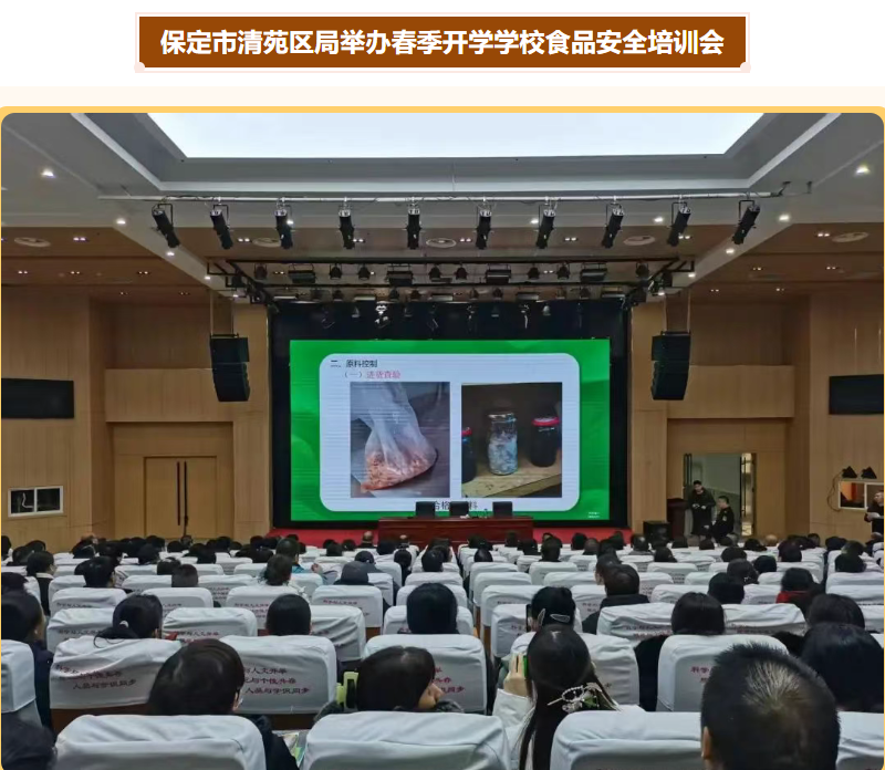 近日,保定市清苑区市场监管局联合区教体局,对全区集中供餐单位以及各级各类中小学、幼儿园的食品安全负责人、安全员和从业人员进行专题培训,重点讲解了食品安全责任、校园食堂食品加工过程控制要求以及食堂食品安全管理制度等内容,同时要求相关负责人开展食品安全隐患自查,加强日常管理工作,自觉消除安全隐患,确保师生“舌尖上的安全”。(保定市清苑区局微信公众号)