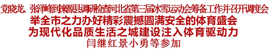 党晓龙强调,要强化服务保障,努力把冰雪运动会办成推广保定形象的展示窗。围绕精彩、震撼、圆满、安全的核心要求,细化分解任务,分别做好文章,持续推广“涞源冰雪”品牌,积极谋划国际冰雪赛事,着力打造世界冰雪活动中心之一。要全力确保服务到位,在服务保障方面争创一流;全力确保安全到位,扎实做好现场应急救援、安全保卫、交通保障、食品安全、人群疏导、疫情防控等工作;全力确保宣传到位,积极对接主流媒体,加强与微信、抖音、快手等新媒体合作,全视角展示冰雪运动会全景动态和冰雪运动发展成效,展现全市激情奋进“十四五”、再造一个新保定的新风貌、新气象、新作为。