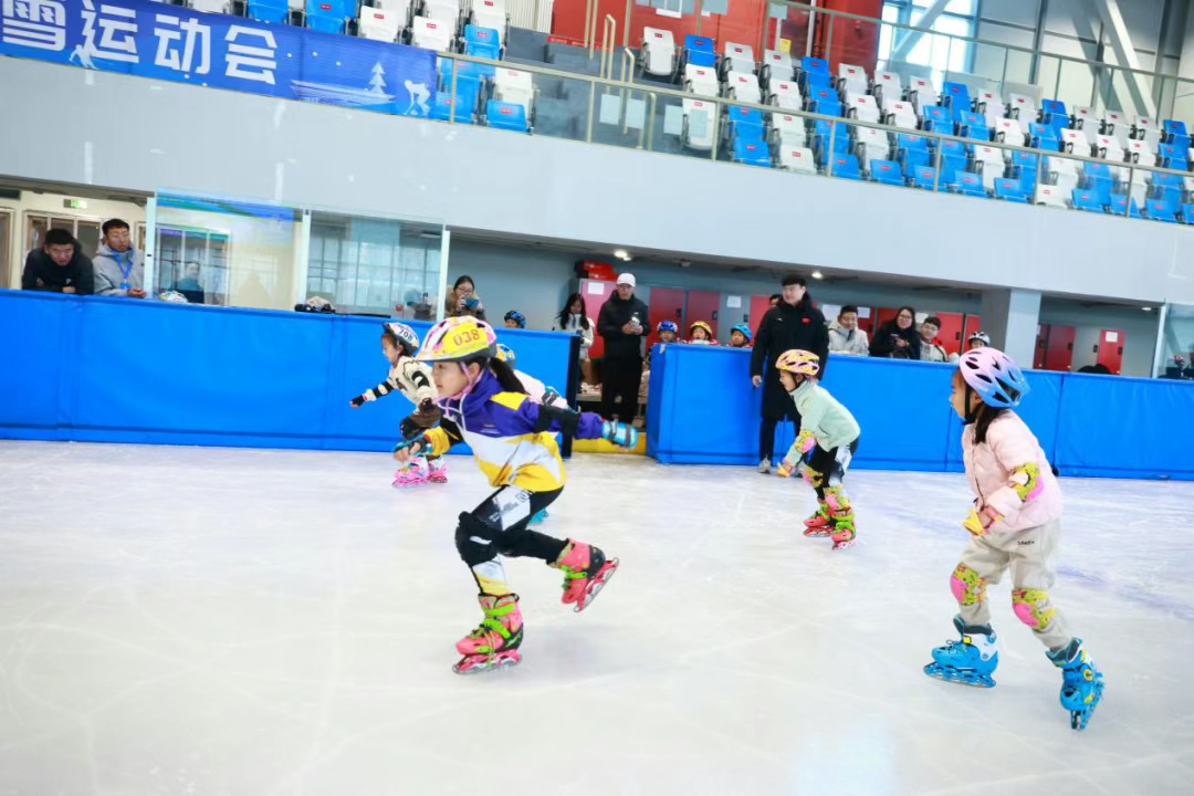 本次雄安新区冰雪运动会共设置了速度滑冰、轮滑、滑轮、陆地冰壶、陆地冰球、雪地足球、雪地拔河等7项赛事,共计400余名运动员参赛。