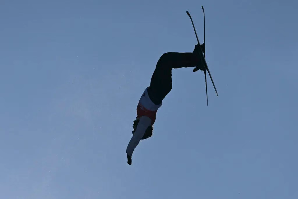2月9日,河北运动员陈雪铮在第九届亚冬会自由式滑雪空中技巧女子个人决赛中。新华社记者 杨晨光 摄