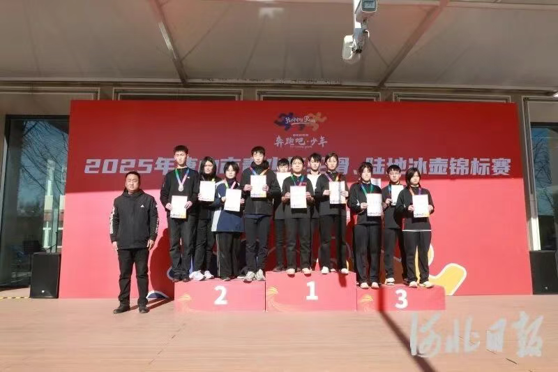 图为唐山市青少年陆地冰壶锦标赛颁奖现场。王苏江摄据了解,唐山市青少年轮滑、陆地冰壶锦标赛作为2025年“奔跑吧·少年”唐山市青少年U系列比赛项目之一,旨在推广青少年冰雪运动,培养体育后备人才。未来,唐山市将持续优化赛事体系,扩大覆盖范围,助力青少年体育事业迈向新高度。