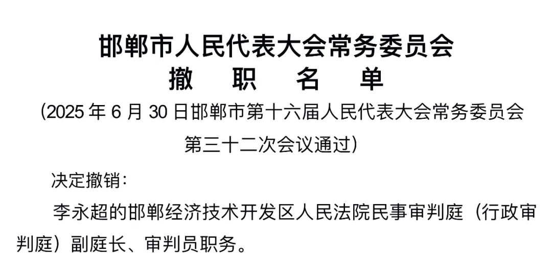 邯郸市人大常委会任免职名单