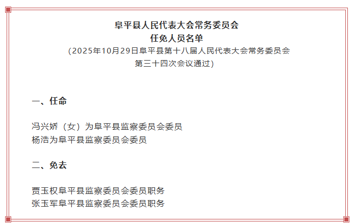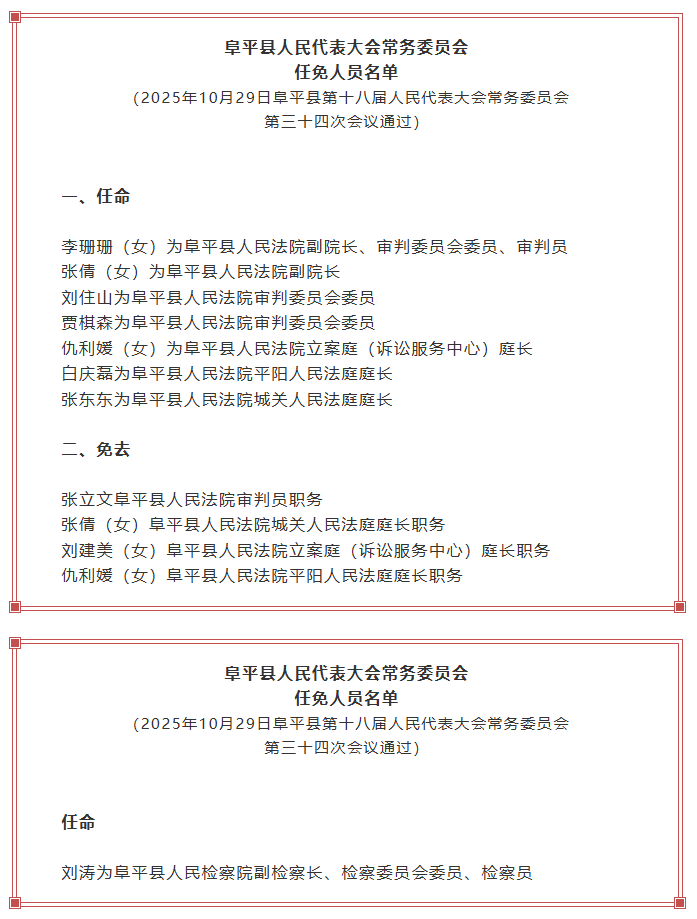 阜平县人大常委会任免人员名单
