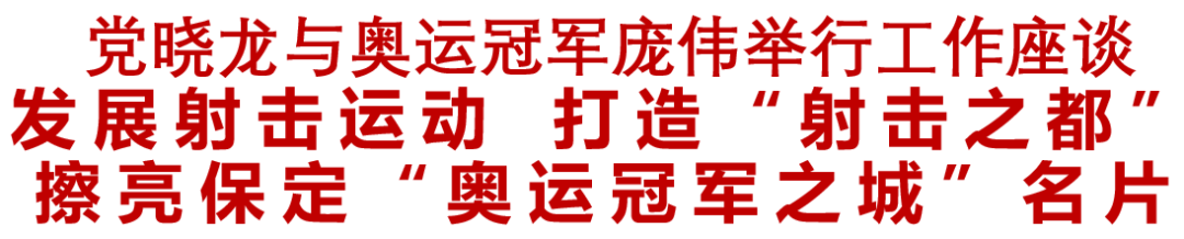 530日,市委书记党晓龙与奥运冠军庞伟举行工作座谈。党晓龙强调,充分发挥奥运冠军影响力和号召力,大力发展射击运动,做强射击产业,建设综合性射击比赛场馆,推进射击运动进校园活动,打造射击之都,擦亮保定奥运冠军之城名片。