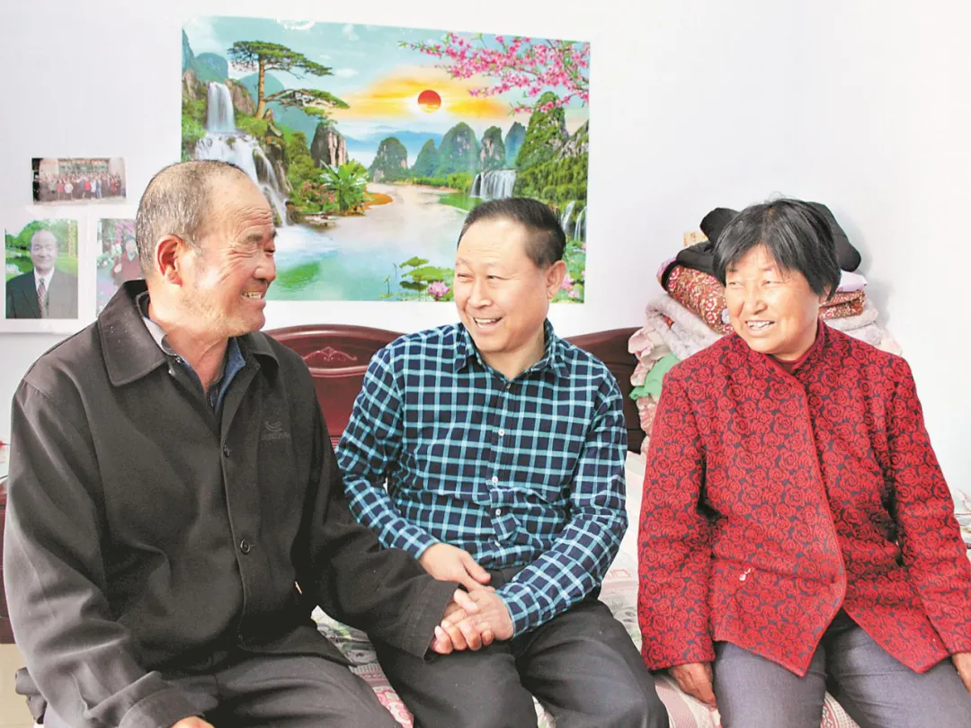 范振喜(中)正和村民一起话发展。(资料片)
