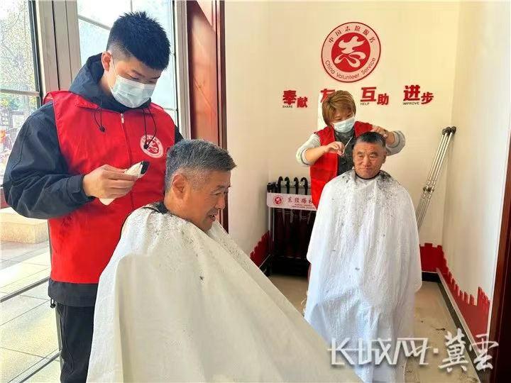 志愿者为社区老年人免费理发。李丹丹供图