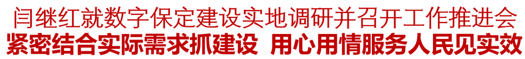 闫继红强调,要突出强支撑,加大信息基础设施建设力度,构建全市政务云体系,加快数字中台项目建设,为数字保定建设构筑坚实的数字底座。要发展新服务,贯彻落实“人民城市人民建、人民城市为人民”理念,统筹打造政务、医疗、教育、出行等惠民服务数字端口,加快形成数字化、平台化、可视化城市管理服务新模式,不断提升社会治理体系和治理能力现代化水平。要努力树标杆,积极组织观摩学习,推广成功建设经验,点上开花、线上结果、面上出彩,努力打造全国数字化转型标杆城市。