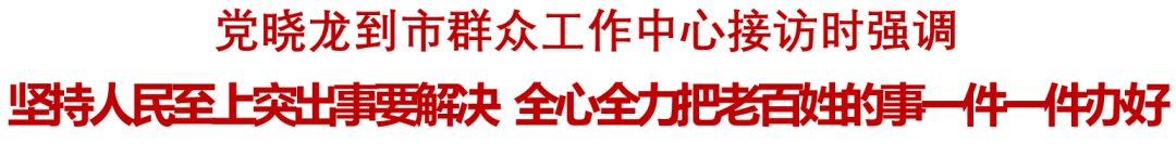 6月10日下午,市委书记党晓龙到市群众工作中心接访时强调,要深入学习贯彻习近平总书记关于加强和改进人民信访工作的重要思想,贯彻落实省委书记倪岳峰在保定调研讲话精神,坚持人民至上,突出“事要解决”,全心全力把老百姓的事一件一件办好,努力保持平稳健康的经济环境、国泰民安的社会环境、风清气正的政治环境,以实际行动迎接党的二十大胜利召开。