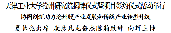 6月23日,天津工业大学沧州研究院揭牌仪式暨项目签约仪式活动,在沧州国际会议中心举行。天津工业大学校长、中国工程院院士夏长亮出席,市委书记康彦民,省科技厅党组书记、厅长龙奋杰,天津工业大学常务副校长陈莉致辞,市委副书记、市长向辉主持。