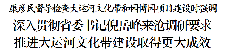 7月20日,市委书记康彦民就大运河文化带和园博园项目建设督导检查,强调要深入贯彻习近平总书记关于大运河文化保护传承利用的重要指示批示精神,全面落实省委十届二次全会精神和省委书记倪岳峰来沧调研要求,解放思想、奋发进取、真抓实干,统筹抓好保护、传承、利用,推进大运河文化带建设取得更大成效。市委副书记、市长向辉一同督导检查。