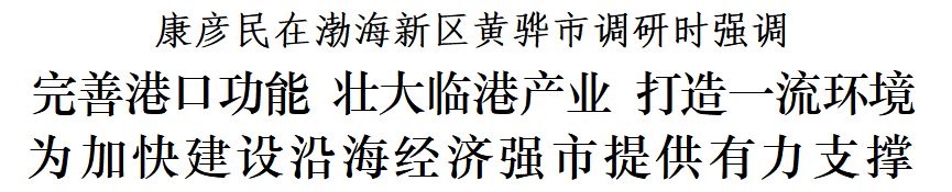 康彦民指出,全市各级各部门特别是渤海新区、黄骅市要牢固树立沿海思维、开放理念,坚持向海发展、向海图强,对标先进、发挥优势,加快完善港口功能,大力构建现代临港产业体系,全面加快沿海经济强市建设步伐。要抓好港口集疏运体系建设,加快推进专业码头和系列铁路专用线项目,统筹谋划东西向路网建设,真正形成沿海—腹地全域联动发展格局。要抓好项目建设和招商引资,聚焦绿色化工等主导产业,围绕延链补链强链,科学布局、精准选址,努力引进落地一批高质量的大项目好项目,全面支撑临港产业做大做强。要抓好科技创新,加快企业入园升规技改步伐,落实研发费用加计扣除政策,加强与科研院所和高校合作,加快科技成果转化,推动传统产业转型升级。要强化服务意识,优化营商环境,切实落实领导包联机制,推动政策直达末端,真正帮助企业解决实际困难和问题。