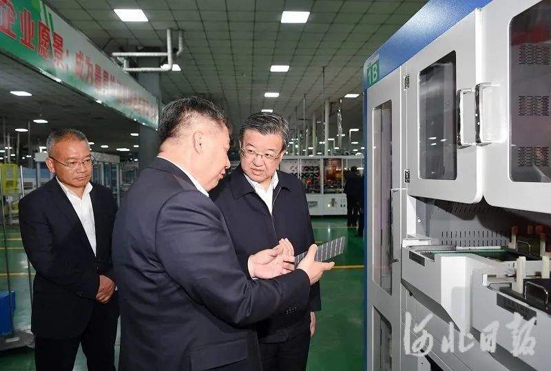 4月9日,省委书记、省人大常委会主任倪岳峰在唐山市玉田县海泰新能科技股份有限公司调研。河北日报记者赵海江摄