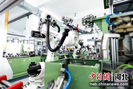 图为廊坊市广阳经济开发区金润科技集团,机械臂在生产线上进行作业。付瑞琪