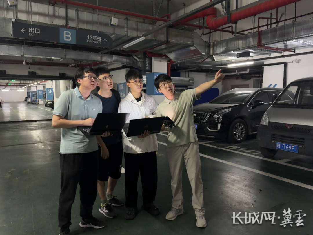 项目组成员在雄安新区地下停车场进行测试。长城网·冀云客户端记者 康紫祎 摄