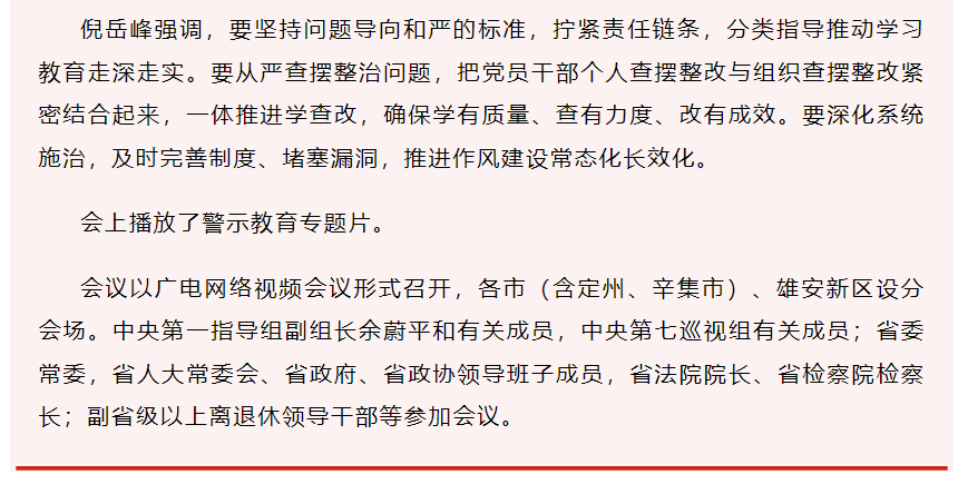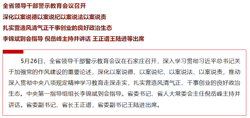 河北省领导干部警示教育会议召开