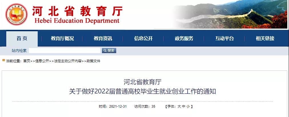 河北省教育厅最新发布关于做好2022届普通高校毕业生就业创业工作的通知↓↓↓