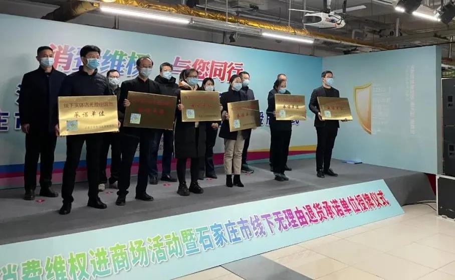 为促进放心消费创建,优化消费环境,激发消费潜力,提升经营者诚信经营水平,增强群众消费满意度和安全感,2022113日,河北省市场监管局、石家庄市场监管局、裕华区市场监管局在石家庄玉华信誉楼百货有限公司,联合举办了消费维权进商场宣传活动线下实体店无理由退货承诺单位授牌仪式。此次授牌仪式,率先为全市首批线下实体店无理由退货承诺单位授牌,标志着石家庄市放心消费创建工作取得了突破性迈进,对营造安全放心的消费环境,助推经济快速健康发展具有重要意义。