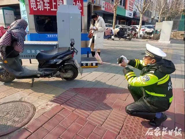 为确保电动自行车登记备案工作有序推进,切实方便群众办理电动自行车登记备案预约。连日来,石家庄交警联合社区工作人员,深入大街小巷、商超、社区等场所,宣传上牌政策,手把手帮助群众完成预约办理流程,确保群众知晓电动车上牌相关政策,及时办理上牌预约手续。