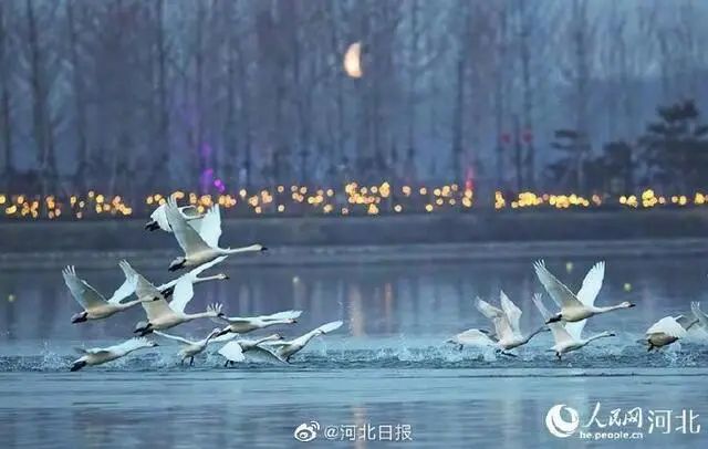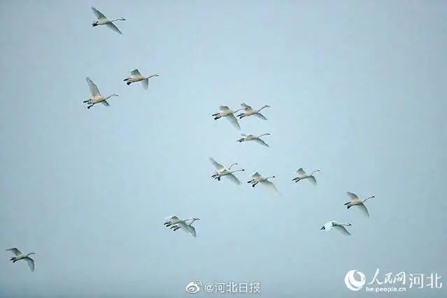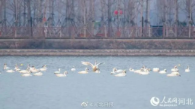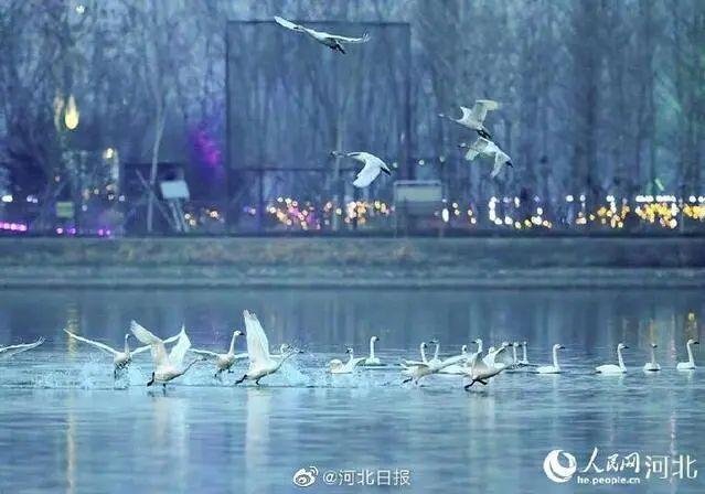 近日,在河北省石家庄市滹沱河叶子广场东侧的水面上,数百只白色的精灵小天鹅在这里嬉戏。它们时而翩翩起舞,时而引吭高歌,在向人们展示着人与自然和谐共生之美。