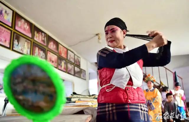 简陋的舞台、简陋的后台,丝毫不能减少南岩乱弹剧团成员对家乡戏的热爱。