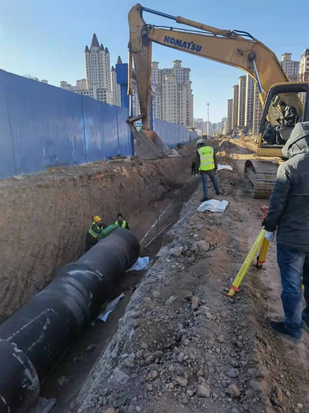 近日,记者在解放路调直工程(九中前街至长芦大道)现场看到,两台打桩机和4台大型挖掘机不停地作业,20名技术人员忙进忙出,十几名工人正在紧张施工。现场一派繁忙有序的热闹景象。“为了保证施工进度,我们今年在工地过的年。”项目负责人李凯说。