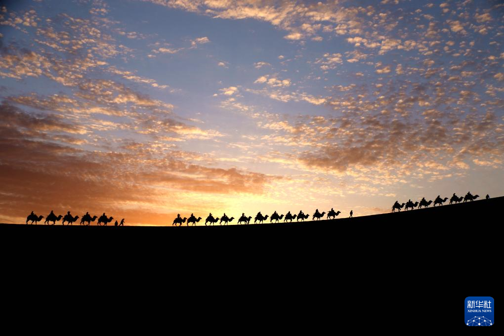 游客在甘肃省敦煌市鸣沙山月牙泉景区游览(10月4日摄)。