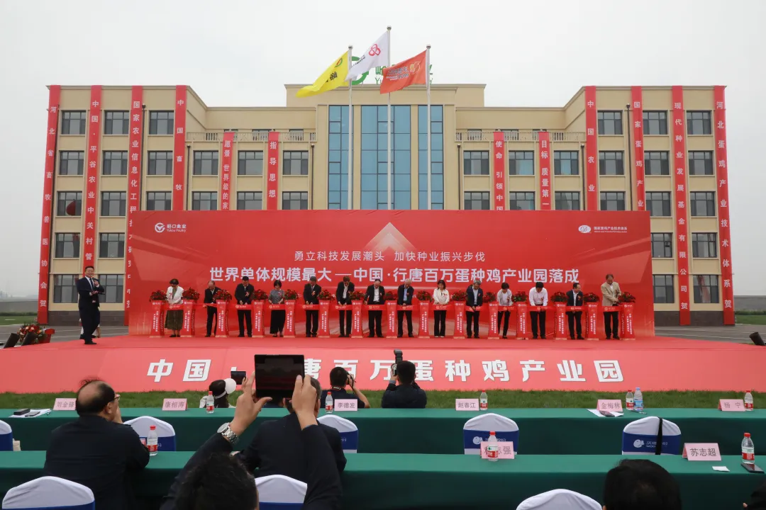 9月28日上午,座落于石家庄市行唐县上方镇的百万蛋种鸡产业园内彩旗招展,锣鼓喧天,一派喜庆景象。世界单体规模最大--中国·行唐百万蛋种鸡产业园落成典礼在这里举行,这是京津冀协同发展又一成功范例,标志着中国蛋鸡产业迈向了现代化、智能化发展轨道。中联部及省市县有关领导,全国高等院校、科研单位的领导,国家农业生物育种重大项目的团队代表,石家庄市直有关部门、行唐县四大班子领导及各委办局及乡镇主要负责人出席会议。中国工程院院士李德发、赵春江、金梅林、康相涛,中联部机关党委一级巡视员刘金峰、国家蛋鸡产业技术体系首席科学家杨宁、中国畜牧业协会总畜牧师宫桂芬、首农食品集团工会主席郑立明、沃德股份董事长孙皓等为产业园落成剪彩。中国·行唐百万蛋种鸡产业园占地720亩,集一个100万套蛋种鸡养殖基地、一个50万笼位育雏育成基地、一个年孵化雏鸡8000万只的孵化基地及一个年生产饲料12万吨的饲料厂于一体。产业园率先使用国内先进的“3+3”4列6层H型叠层笼饲养模式,以产业链集群优势实现从育雏到种鸡饲养、从种蛋孵化到饲料供给的全链条一体化管理,年可向社会提供优质商品代健母雏8000万只,满足全国8%的蛋雏鸡需求。“我们产业园坚持以科技创新为引领,大力提升新质生产力,依托国家蛋鸡体系科研专家团队,汇集运用研发的当今家禽领域国内外先进的技术和设备,成功培育出中国特色、世界独有的蛋鸡品种,实现从鸡舍环境到鸡蛋收集分级,从鸡蛋孵化到雏鸡处理的生产流程自动化、信息化、智能化管理,以智慧园区助力传统蛋鸡产业转型升级、提质增效,推进企业高质量发展。”石家庄峪口禽业有限公司总经理汪全生说。中国·行唐百万蛋种鸡产业园的落成,是京津冀协同发展的成功范例,实现了蛋鸡产业从首都向周边地区的合理转移,优化了京津地区的产业布局,是京津冀协同发展战略智慧的体现。它的落成增强了华北、西北良种供应能力,华北地区以京系列蛋鸡良种为核心,带动饲料生产、鸡蛋销售、食品加工相关产业发展,释放蛋鸡产业集群效应;西北地区携手山西晋龙、宁夏顺宝、陕西黄马甲等规模化龙头企业,为西北蛋鸡产业注入新的活力和动能。同时以产业园为核心,构建起“公司+超市+家庭农场”的线上线下一体化新型产业发展模式。“线上,智慧蛋鸡平台为养殖户量身打造了十二大数字化服务场景,帮助养殖户实现科学养、智能诊、精准防、线上买;线下,67家流动蛋鸡超市为养殖户提供饲料、兽药、疫苗、抗体监测、鸡群免疫等服务,实现良种扩繁、农资供应、蛋品加工、物流配送到百姓餐桌全链条的贯通,合力带动2万养殖场(户)增产增收,企业年区域产值可达256亿元,成为乡村振兴的典范。”汪全生说。中国·行唐百万蛋种鸡产业园的落成,是政产学研联合创新的科技示范平台,汇集蛋鸡产业最新技术和成果。产业园应用新模式,示范高科技,发展新农业,是科技创新在现代农业的生动实践,展示了中国农业科技的最高成就。它的建成将推动科技创新和产业创新深度融合,促进创新成果在全产业的广泛推广和应用,带动产业快速转型升级,引领中国蛋鸡产业高质量发展。中国·行唐百万蛋种鸡产业园的落成,是精准扶贫国家战略的璀璨成果。据介绍,石家庄峪口禽业项目一期工程于2019年3月在行唐县投产以来,创新探索政、银、农、社、企“五位一体”产业精准扶贫模式,让行唐县12个乡镇3329户6397名脱贫户年获租金218万元、股金200万元、薪金6000万元、利金240万元,带动约1000人就业,户均年增收2万元。典礼结束后,与会同志参观了石家庄峪口禽业有限公司的现代化鸡舍、研发中心基地、蛋库及现代化孵化厅,听取了行唐县农业产业发展情况介绍,随后参观了行唐县特色农产品。