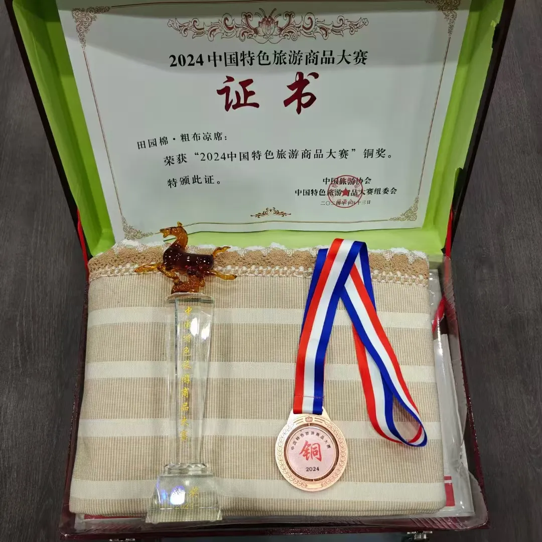 近日,2024中国特色旅游商品大赛暨2024中国旅游商品大赛颁奖仪式在浙江义乌国际博览中心举行,衡水市田园棉·粗布凉席获铜奖,三尺三工坊·鲁班锁等11件/(套)作品获入围奖。