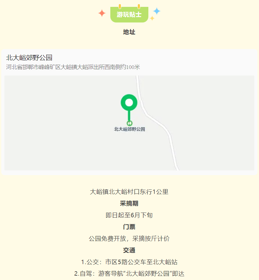 这个夏天,不妨暂别城市喧嚣,来北大峪郊野公园赴一场“甜蜜之约”。尝一口枝头鲜杏的清甜,漫步山野听风赏景,让舌尖与心灵同时收获满满幸福。